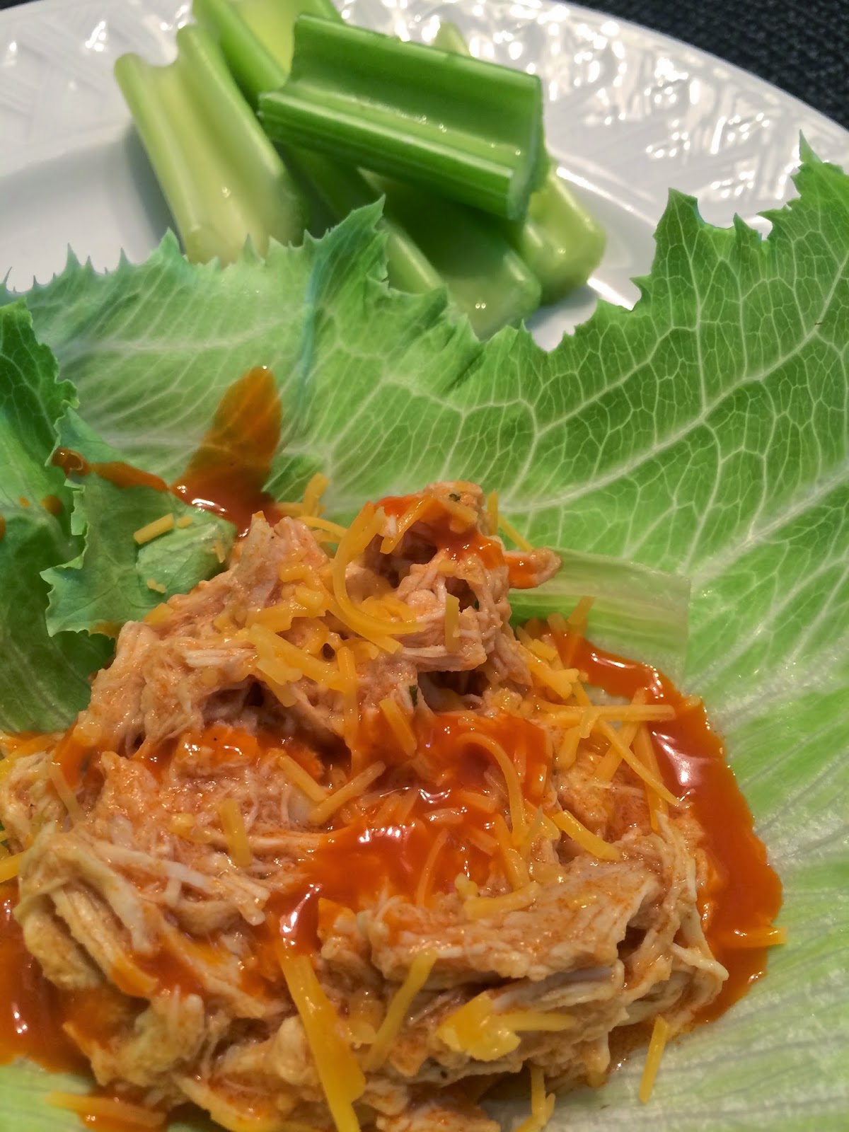*For a healthier option: I used lettuce instead of a bun and topped it with cheddar cheese. I was still hungry, so I made a salad with the lettuce, buffalo chicken, cheddar cheese, and crushed tortilla chips on top...delicious!